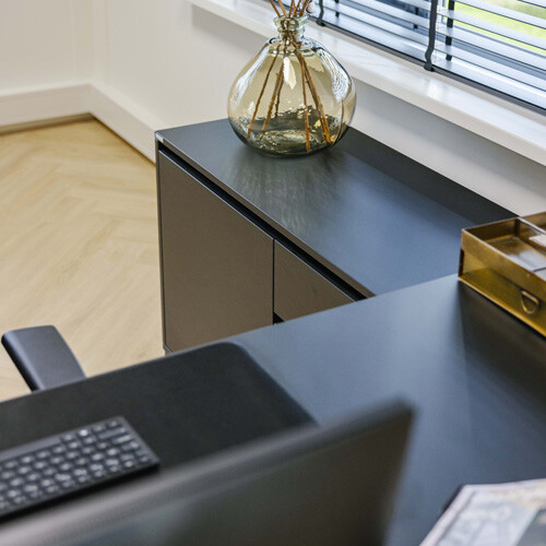 Ga voor vloerbedekking van hoge kwaliteit, zoals een zacht tapijt of een stijlvolle houten vloer. Het juiste vloermateriaal draagt bij aan de luxe uitstraling en verbetert de algehele sfeer van het kantoor.Directiemeubilair kopen:
