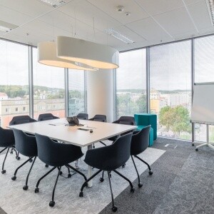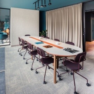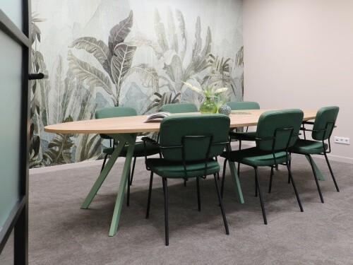 Hoeveel mensen moeten er aan de tafel kunnen? Kies niet voor een te kleine of een te grote tafel. Het wordt al snel krap. Dat geeft een benauwd gevoel. Een te grote ruimte en tafel maakt de ruimte weer akelig kil. Als stelregel houden we een breedte van 60 tot 80 cm per persoon aan. Kies eventueel voor modulaire meubels om extra ruimte te creëren als de vergadertafel incidenteel toch te klein blijkt. Een grote ruimte kan ook opgedeeld worden in twee ruimtes, gescheiden door akoestische scheidingswanden. Grote vergadering? Dan schuift u het paneel weg en schuift u de tafels tegen elkaar.